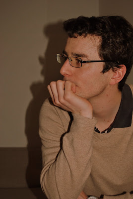 Finalement, Benoît et moi sommes partis diner au japonais où on va souvent et qui est une valeur sûre. Comme il était encore tôt, nous sommes allés prendre un verre près de chez moi dans un bar qui s'appelle "Die Tagung" (Wühlischstrasse 29, Friedrichshain) et qui a cherché à remettre en scène la DDR et l'époque socialiste en accrochant des portraits de Marx, Staline, Lénine, poème à la gloire du parti. C'est un endroit très sympa, pas très cher. Le mieux, c'est de vous montrer le camarade Benoît réfléchissant sur l'avenir du Parti suite au défilé sur la Karl Marx Allee.